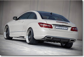 The new ex-works 500 E-class coupé is in itself not underpowered. With 388 PS and 530 Nm torque it's the currently most powerful production model coupé that the company can offer its customers. However, those who like it a touch more dynamic can find what they want with the traditional refiner Kicherer in Stockach. Engineers, technicians and designers have taken on the E-Class derivative and accentuated it in all things sporty, technically and optically. By means of an software update and a sports exhaust system the performance of the V8 was increased by 42 PS and 20 Newtonmetres. So taht the 430 horsepower can freely run the V/max block was raised from 250 km/h to xxx km/h. In addition after the alteration the speedometer can reach speeds of up to 330 km/h.
